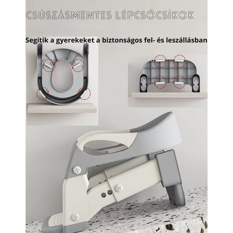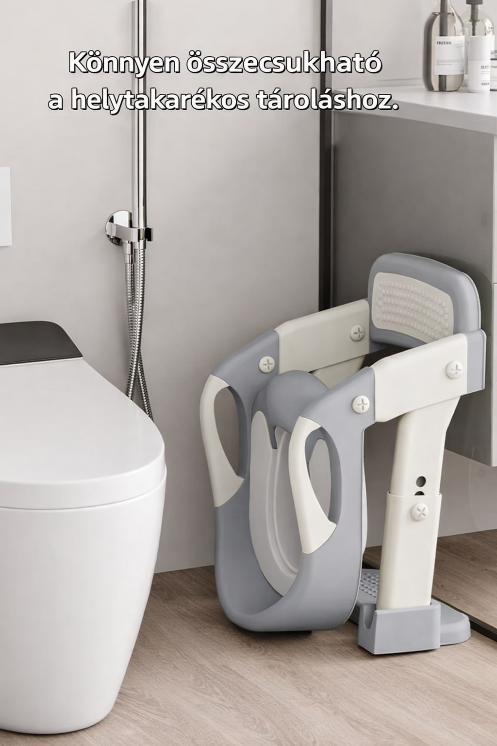 3 az 1-ben bili és fellépős kialakítás: Ez a fellépővel ellátott bilis WC-szűkítő segít gyermekednek zökkenőmentesen átállni a bilizésről a hagyományos WC használatára. A vízálló PVC ülőpárna puha tapintású, kíméli az érzékeny bőrt, és kényelmes használatot biztosít. Stabil és csúszásmentes: A bili kiváló minőségű PVC anyagból készült, széles talpa maximális stabilitást nyújt, csökkentve a megcsúszás vagy felborulás kockázatát. Összecsukható és állítható: A bilis WC-szűkítő négy fokozatban állítható magasságú, 1–7 éves korú gyermekek számára ideális, maximum 50 kg teherbírással. A fellépő és az ülőke könnyedén összecsukható, így használaton kívül helytakarékosan tárolható. Kompatibilitás: A bilis WC-szűkítő kompatibilis a legtöbb WC-típussal, beleértve a V-alakú, U-alakú, O-alakú és hosszított kialakítású WC-ket is. A fröccsenésgátló perem akár 9 cm magas, így hatékonyan megakadályozza, hogy a vizelet az ülőke és a WC közé kerüljön, megkönnyítve ezzel a tisztán tartást. Ez a bilis WC-szűkítő könnyebbé és élvezetesebbé teszi a szobatisztaságra szoktatást a szülők és a gyerekek számára is.