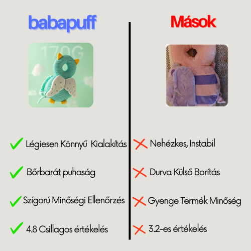 A BabaPuff buksivédő háti biztonságot ad minden lépésnél. Puha plüssből készült, pihekönnyű kialakítása nem befolyásolja a baba egyensúlyát, így szabadon játszhat és mozoghat. Kényelmes, légáteresztő és állítható pántjainak köszönhetően minden babára tökéletesen illik