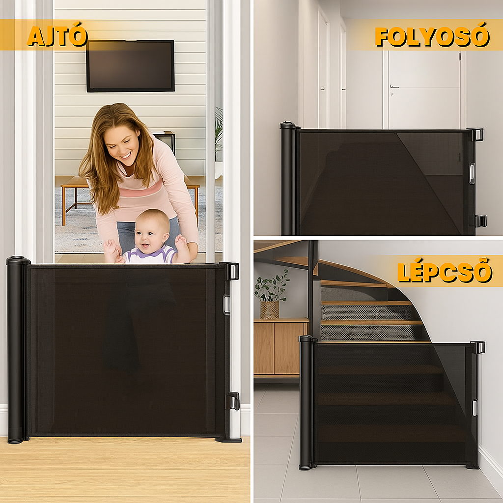 Ajtónyílásoknál, lépcsőknél vagy bármely területen, amit szeretnél biztonságosan elzárni.